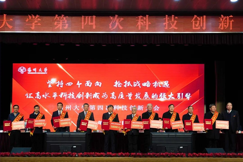 姚冠新在讲话中指出,第三次科技创新大会以来的五年,学校集成系统推进了一系列重大改革,全面形成了有力支撑高水平科技创新持续涌现的制度体系;聚势图强取得了一系列重大成就,全面立起了有力支撑一流学科建设的创新高峰;点面交织燃起了创新燎原之火,全面激发了有力支撑高水平研究型大学建设的创新活力。过往的成就充分证明:扬州大学的科技创新事业是大有可为的,广大的科技工作者是大有作为的。回顾总结来之不易的成绩,必须深刻认识到:推动高水平科技创新,高目标引领是抓手,高素质人才是引擎,体制机制改革是重点,服务发展需求是根本,加强组织是手段,聚合外部资源是关键。