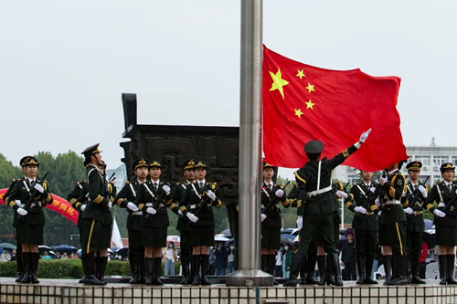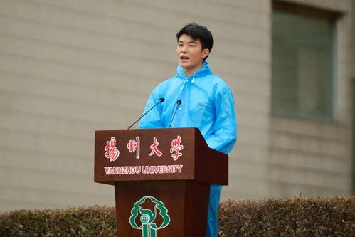 活动现场,焦新安、丁建宁、周如军、韩杰等校领导为中敏创新班、理科天元班、生命科学强基班、吴登云创新班、外语英才班、人工智能卓越班等6个新生创新班授旗。全体校领导为2022级新生代表佩戴校徽。在兽医学院陈杨同学的带领下,现场万余名新同学右手握拳,庄严宣誓:“愿以青春年华,融入百廿扬大;求是求实,求新求精,明德智修言行,融中外通古今;坚苦自立,实学研攻,怀家国之壮志,建大业于寰中!”青春的铮铮誓言在主楼广场上空激荡。典礼结束前,全场师生起立,以饱满的热情齐唱校歌。