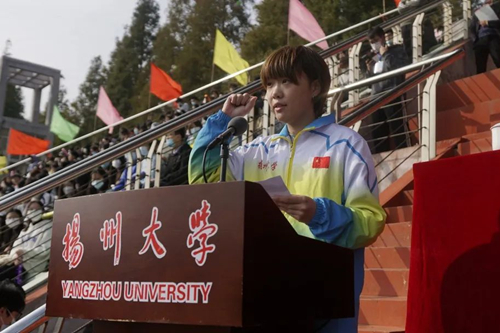 开幕式上,国家级运动健将、江苏省第20届运动会裁判员、江苏省运动会双冠教练员、校高水平运动队教练员、体育学院张欢老师代表全体裁判员宣誓。国家一级运动员、江苏省第20届运动会乒乓球混双冠军获得者、校高水平运动队队员、体育学院研究生张舒文同学代表全体运动员宣誓。在三天的竞赛过程中,运动健儿们奋勇拼搏,争创一流,充分展现了我校师生的活力与风采。