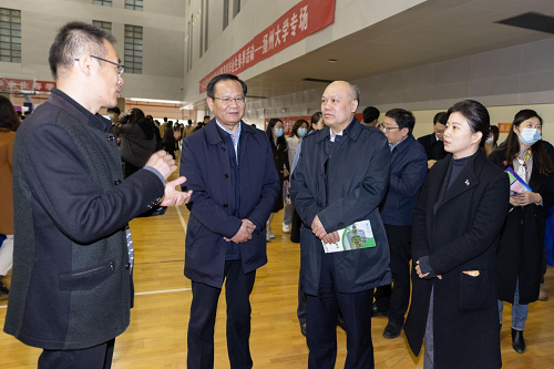 3月20日,“职引未来”――全国大中城市巡回招聘“创响江苏”“才聚扬城”专场供需对接活动在我校扬子津校区举办。人力资源和社会保障部全国人才流动中心主任杨刚基、江苏省人社厅二级巡视员陈少波、扬州市副市长余珽到场指导。校长丁建宁、副校长蔡颖蔚出席招聘会。