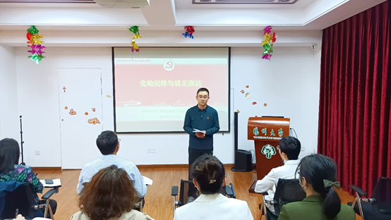 5月18日,海外教育学院举行主题教育专家辅导报告会暨“廉洁文化月”专题党课,校纪委办公室主任负责同志以“党的纪律与廉洁修身”为主题,面向全院教职工开展廉洁教育专题讲座。学院党支部负责同志主持学习活动。