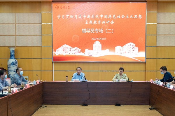 5月26日,学校在荷花池校区教学主楼二楼多功能厅召开学习贯彻习近平新时代中国特色社会主义思想主题教育调研会辅导员专场第二场座谈会。校党委书记焦新安出席会议并讲话,副校长蔡颖蔚主持会议。
