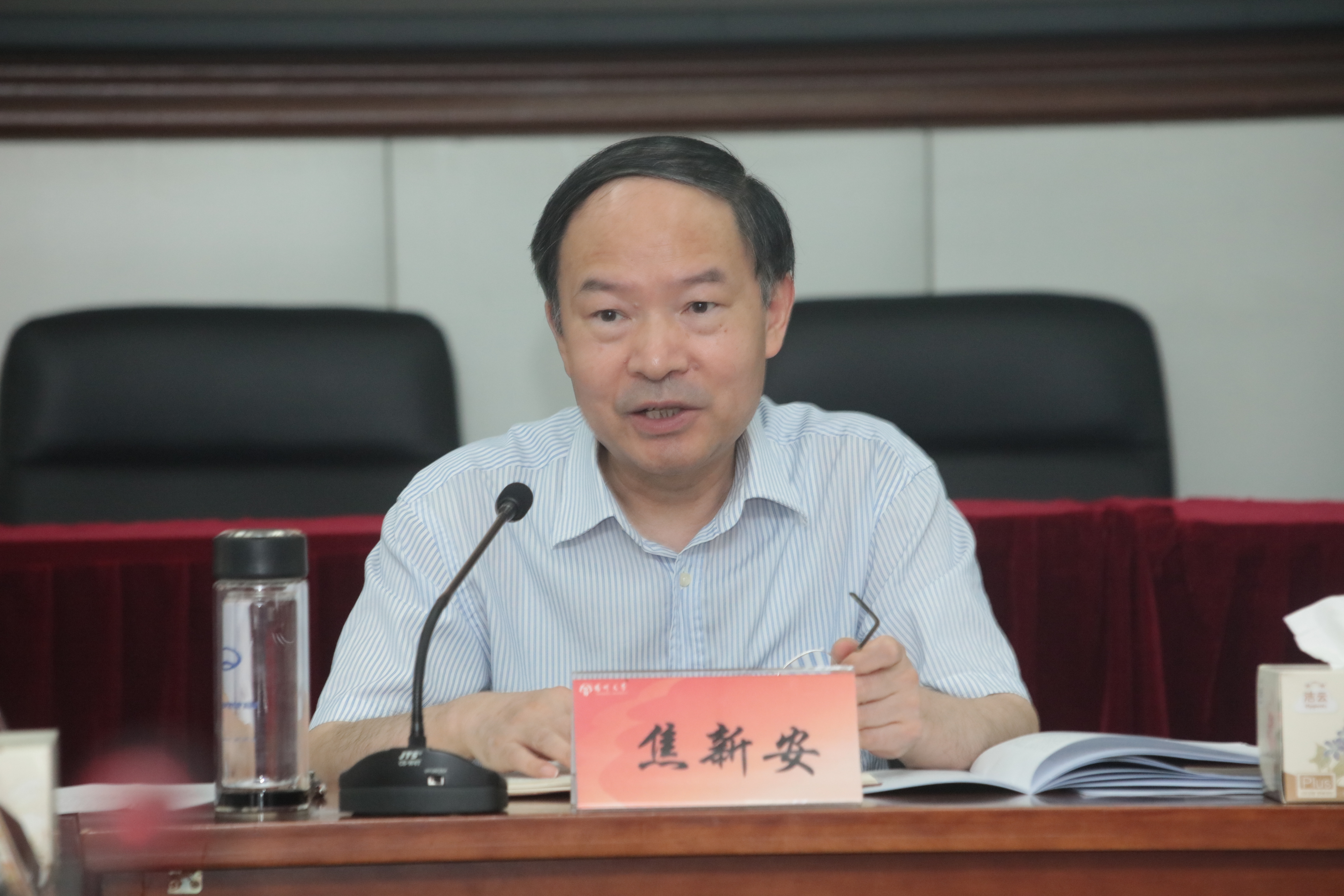 焦新安传达学习了全省领导干部会议精神,并作总结讲话。他强调,习近平总书记对江苏作出的一系列重要讲话和指示批示,是全部工作的总要求。学校要牢记总书记“优化组合、转型化合”殷殷嘱托,深刻领悟和践行这一重要指示的新时代内涵,把学习贯彻总书记对江苏的殷殷嘱托特别是本次考察江苏重要讲话精神,与主题教育相结合,深刻领悟和践行“优化组合、转型化合”重要指示精神,并将其转化为实实在在的工作成效。