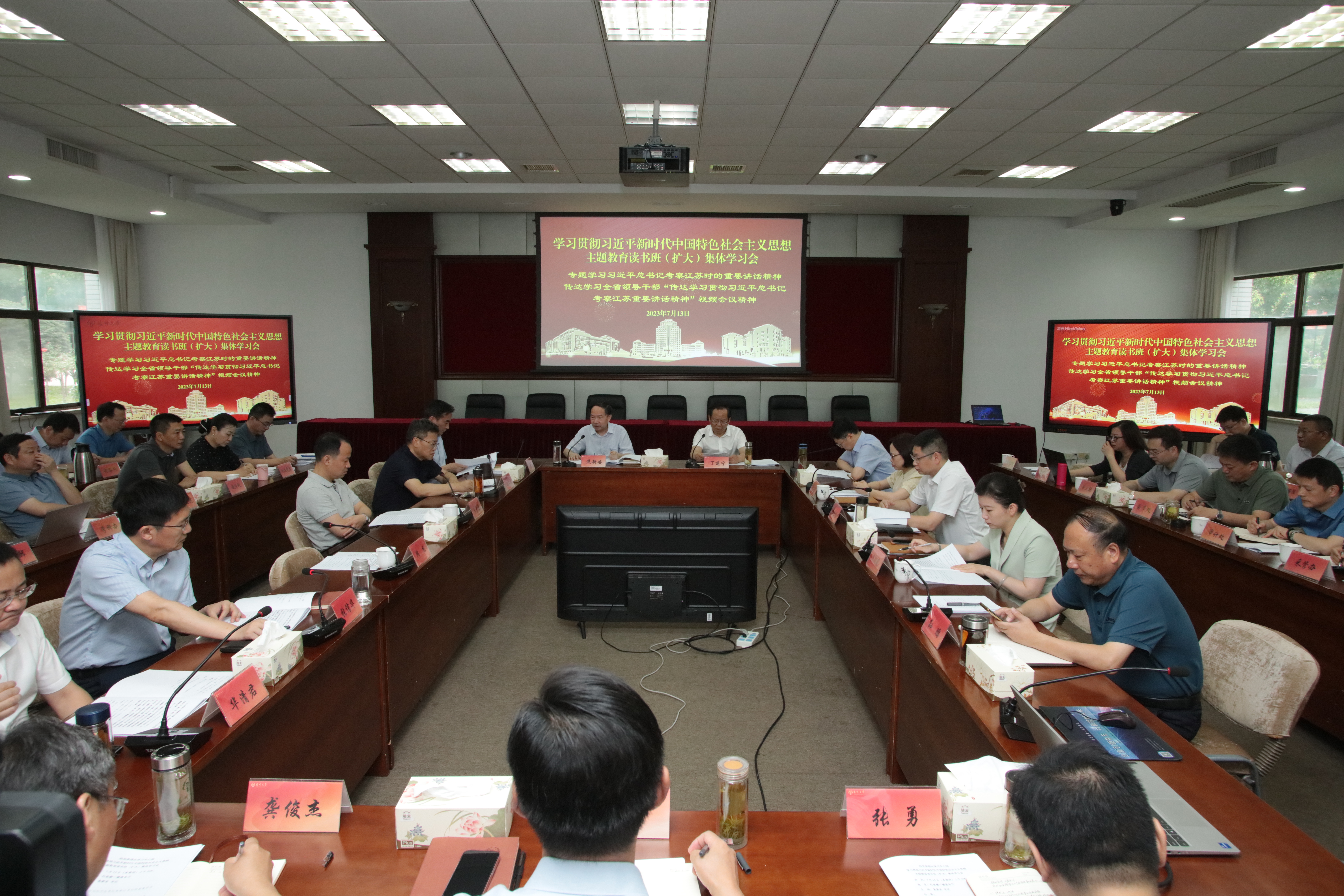 7月13日,学校在行政楼召开学习贯彻习近平新时代中国特色社会主义思想主题教育读书班(扩大)集体学习会,专题学习习近平总书记考察江苏重要讲话精神。校党委书记焦新安主持会议并讲话。校长丁建宁、校党委副书记周如军分别作交流发言。校党委理论学习中心组主题教育读书班全体成员出席会议。