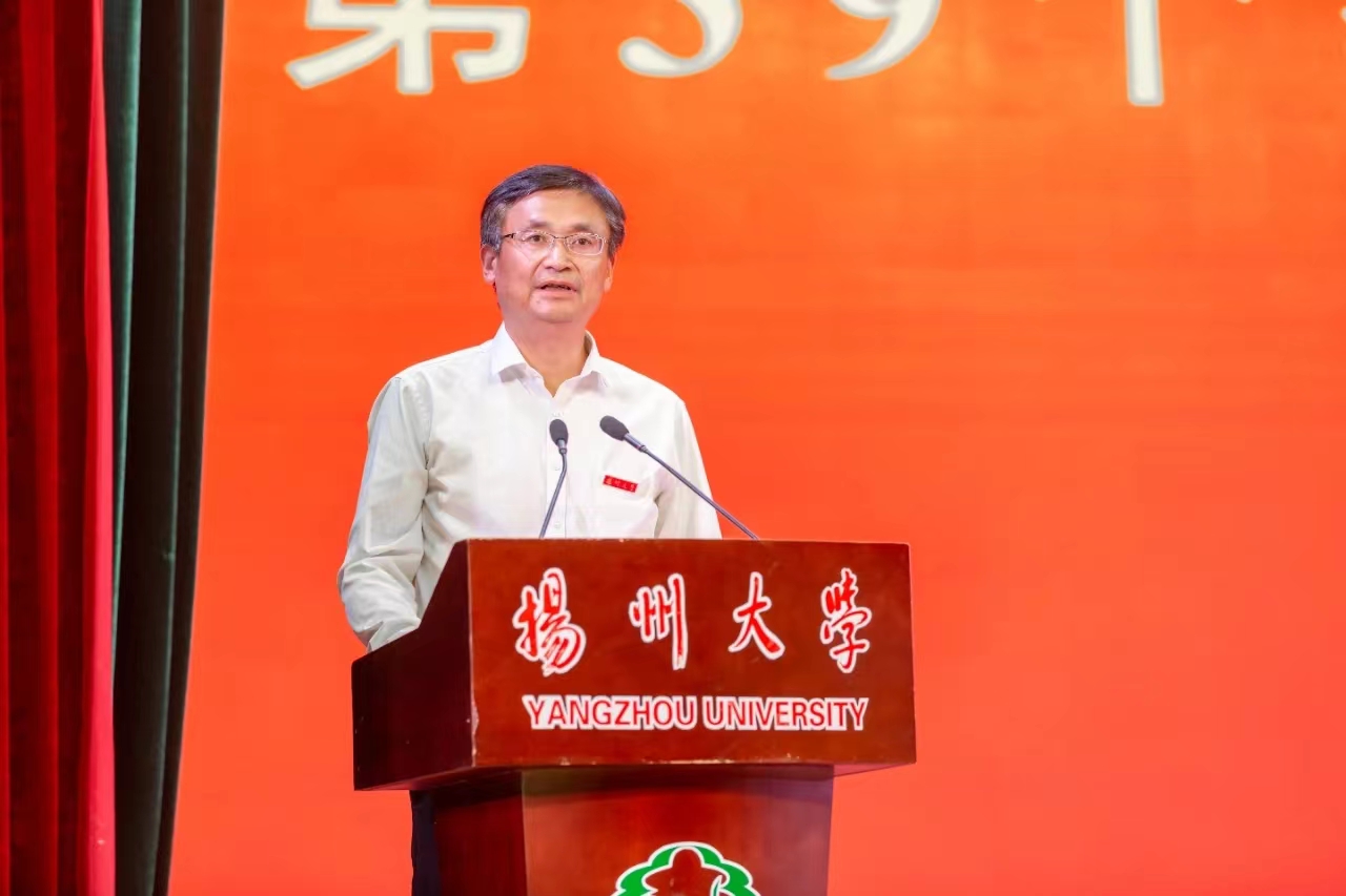 丁建宁在讲话中代表学校党委和行政,向一直关心支持学校事业发展的老教师、老同志、老领导致以崇高的敬意,向受到表彰的先进集体、先进个人表示热烈的祝贺,向默默无闻、奉献在育人一线的广大教育工作者致以诚挚的问候。丁建宁指出,学校历来有尊师重教的优良传统,一代代扬大人的接续奋斗,形成了“厚德抱朴、弘道树人”的教风,涵养了“求是、求实、求新、求精”的校风。他希望广大教师尤其是青年教师,能够牢记“坚苦自立”的校训,坚守“为党育人、为国育才”的初心,践行“躬耕教坛、强国有我”的使命。他亲切寄语全体教师,要坚持立德树人,当好学生成长成才的护航者;坚持博学善思,当好教育初心使命的守护者;坚持奋发有为,当好创建一流学科的攀登者。