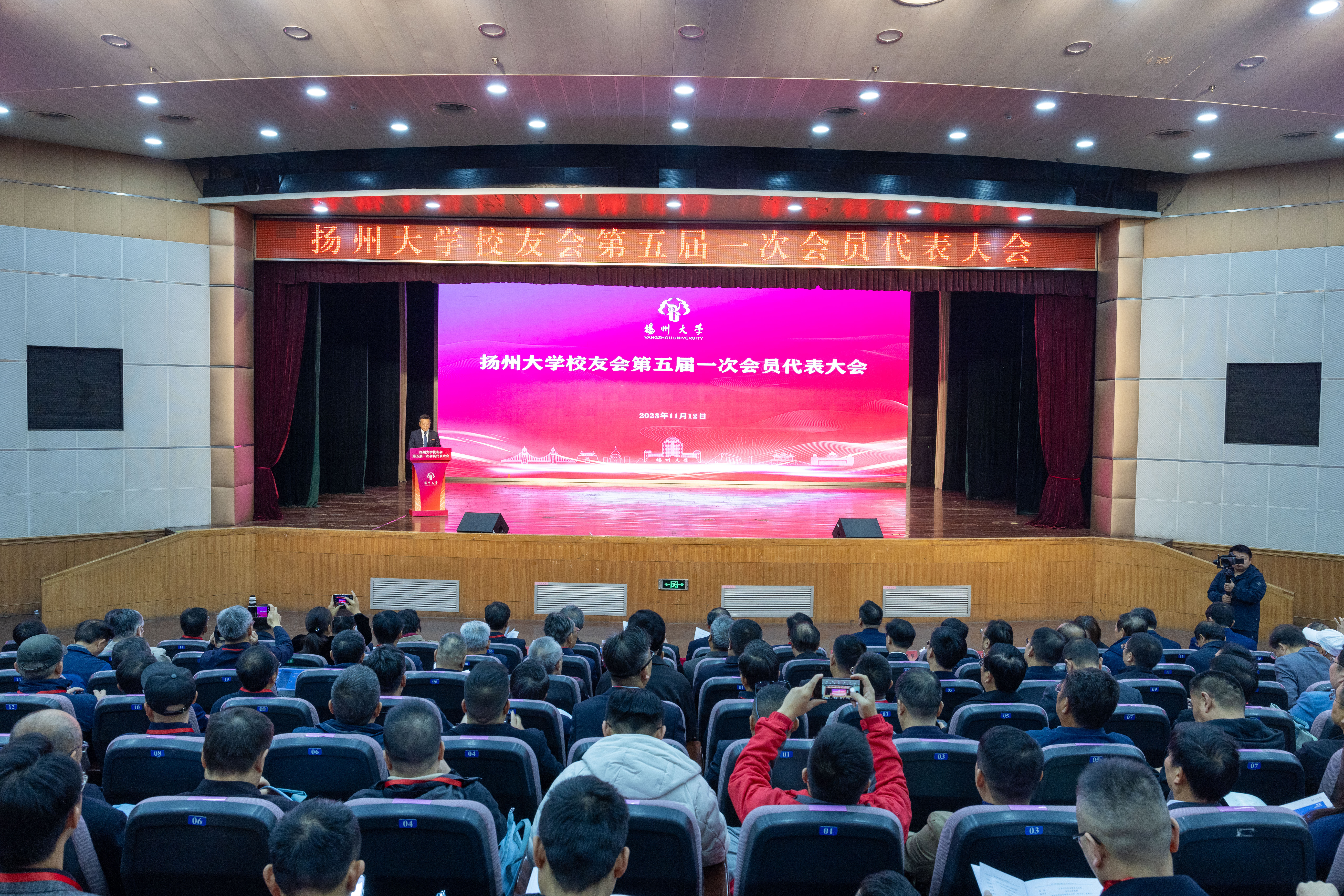 11月12日,扬州大学校友会第五届一次会员代表大会在荷花池校区大学生活动中心三楼小剧场隆重召开。校党委书记焦新安,校长丁建宁,校党委副书记周如军,副校长蒋乃华、龚卫娟、韩杰等全体在扬校领导、党委常委出席大会。副校长赵文明主持大会。