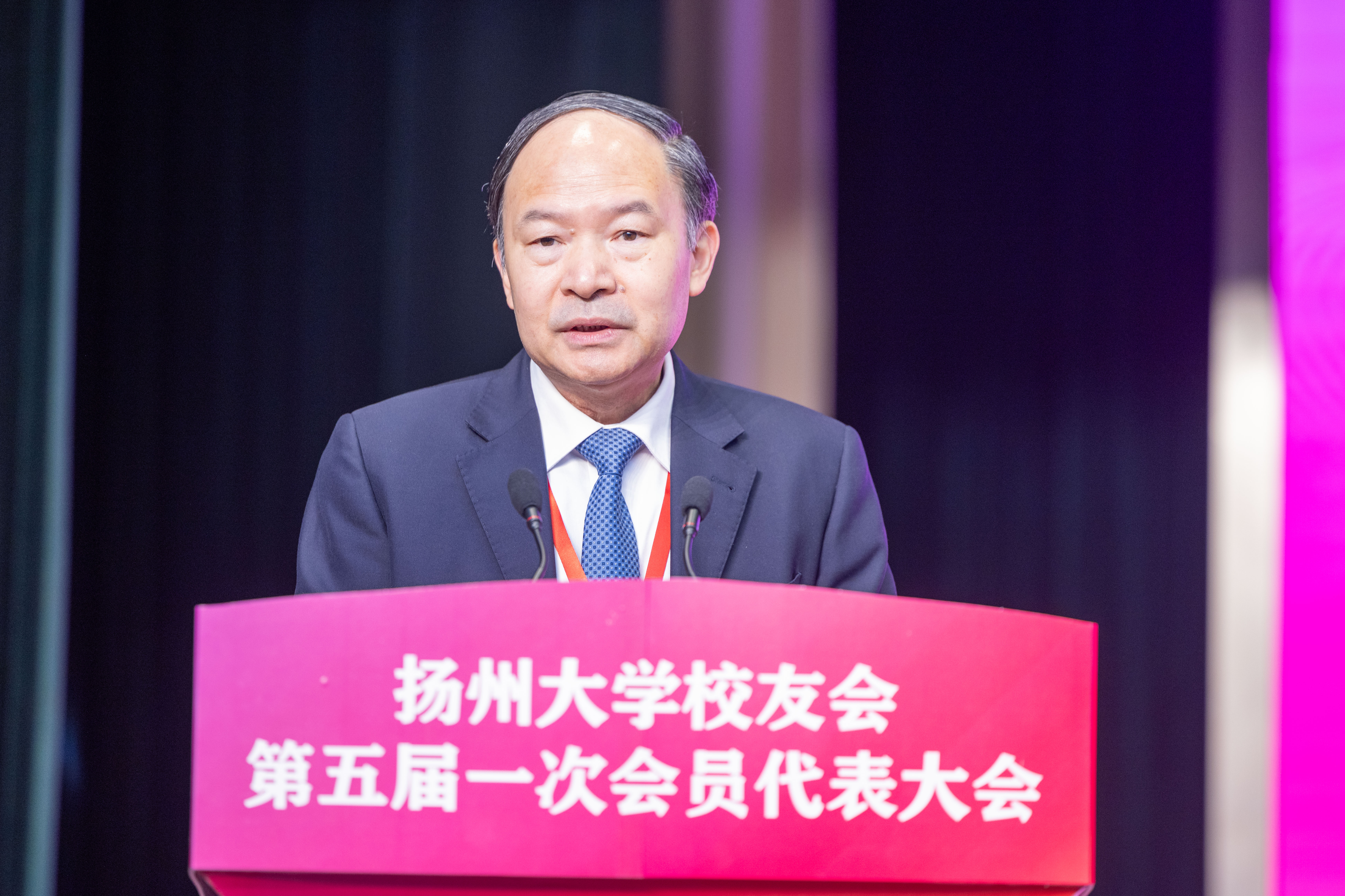 焦新安介绍了“十三五”以来学校各项事业取得的成就。他表示,扬州大学的辉煌过去和丰厚品格,是历届校友创造和积淀的;扬州大学今天的成就和地位,也是一代代扬大人奋斗出来的;扬州大学的未来,同样需要广大校友的关心支持。他强调,母校是校友永远的标签,校友是母校最靓丽的名片,高水平研究型大学建设现代化新征程离不开全体校友们的鼎力支持。他希望,广大校友一如既往地关心支持母校发展和校友会建设;校友总会和各校友分会团结带领广大校友共同筑就“扬大一家”的精神家园;新一届校友会理事会坚持大视野、大格局、大手笔,创新思路、主动作为、务求实效,推动校友工作取得新的更大成就。
