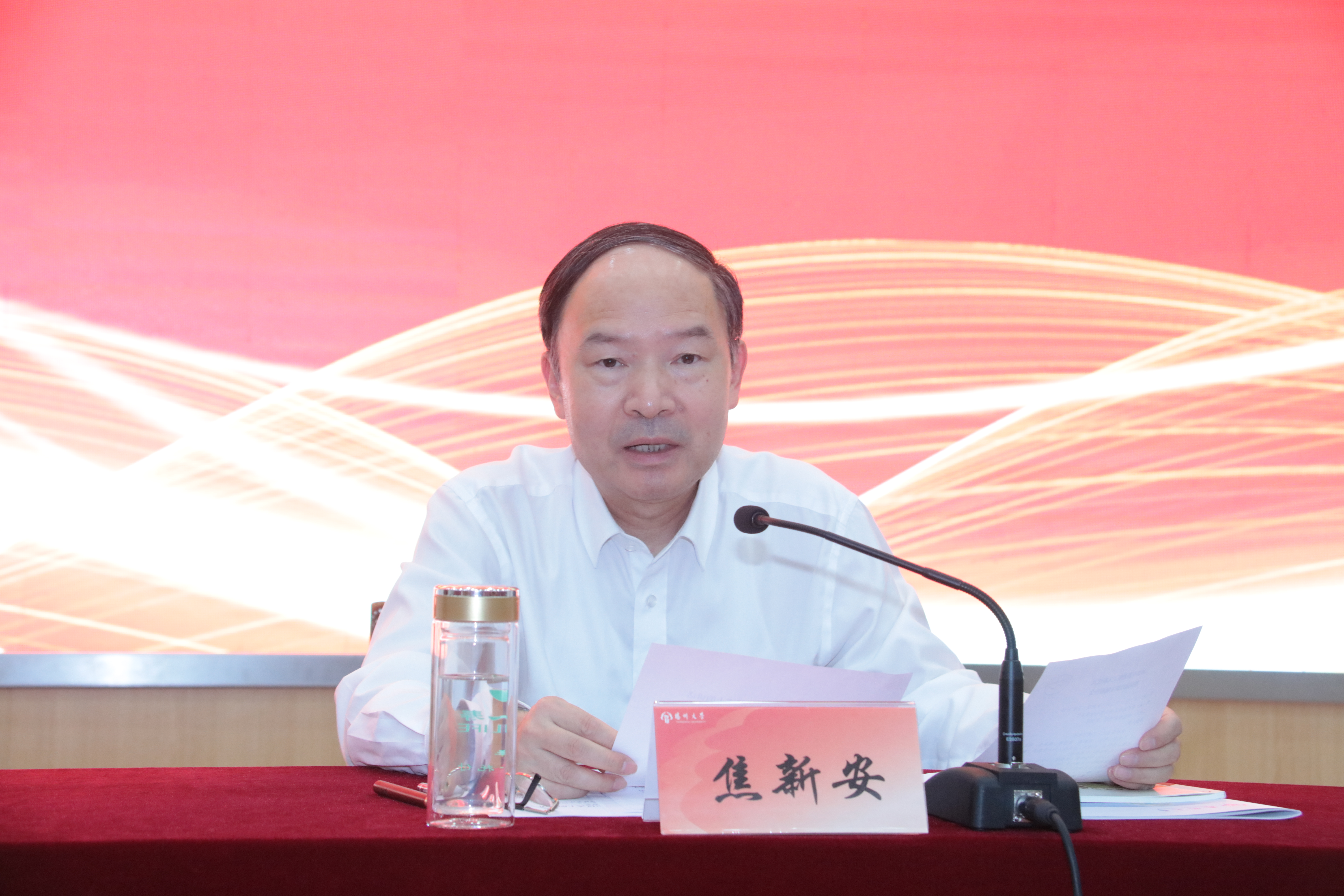 11月2日,学校在荷花池校区逸夫图书馆报告厅举行2023年新教职工入职仪式暨岗前培训主题报告会。校党委书记焦新安出席会议并讲话,校长丁建宁为全体新入职教职工作岗前培训主题报告。校党委副书记周如军主持会议。