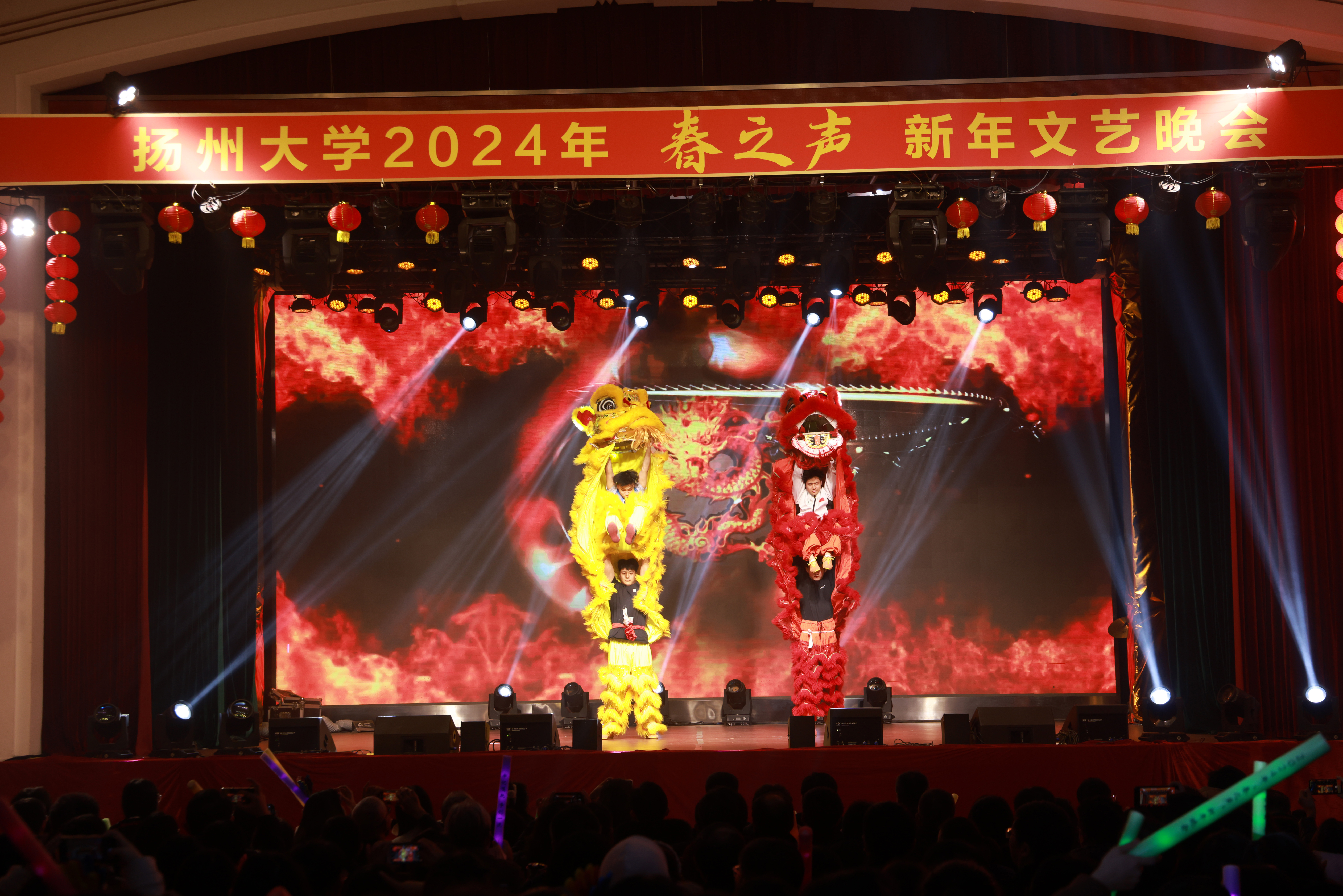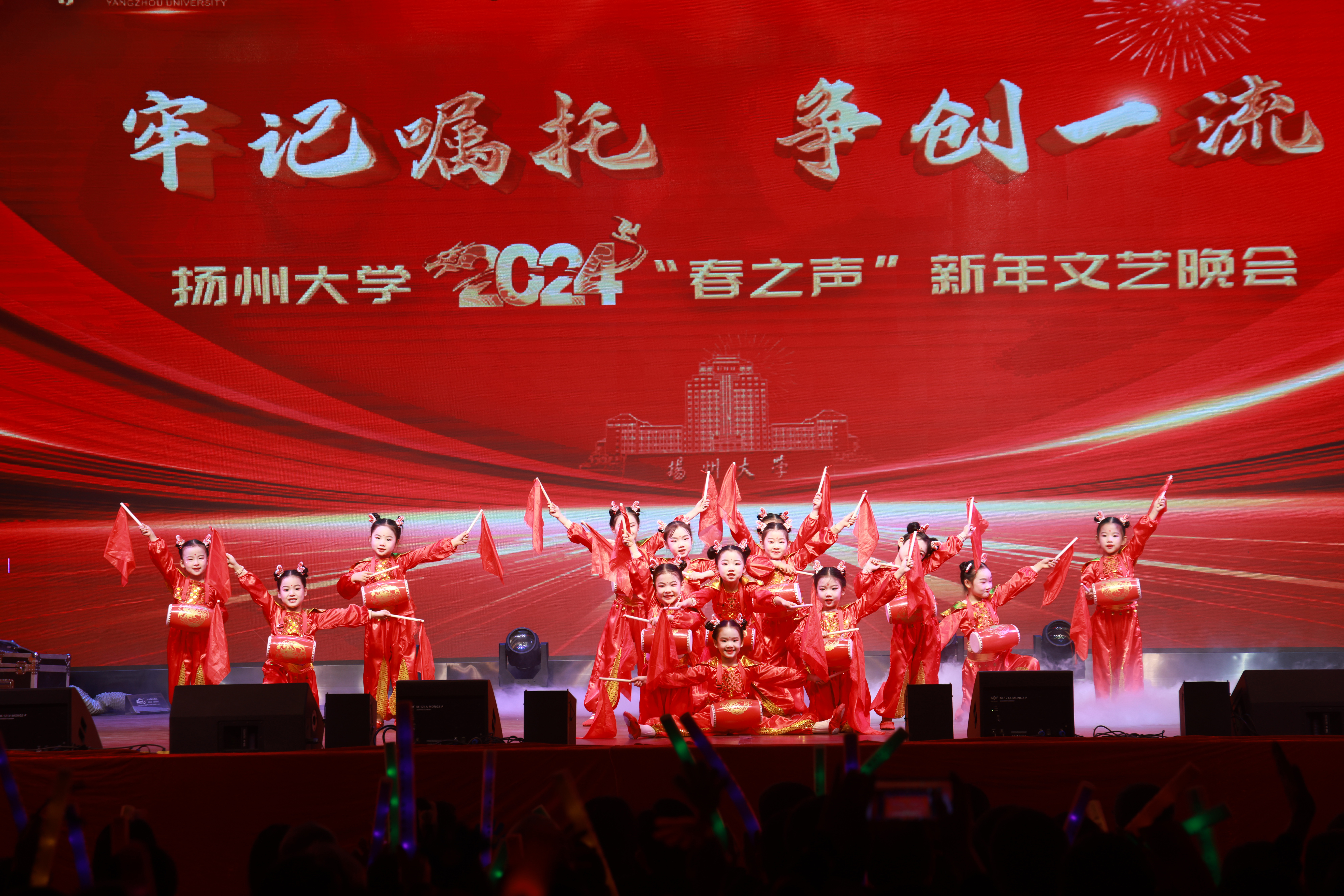 晚会围绕“牢记嘱托 争创一流”主题,参演师生以歌舞、器乐合奏、歌曲联唱等丰富多彩的艺术形式,展现了我校广大师生开拓进取、朝气蓬勃的精神风貌。曲调激昂、催人奋进的民乐合奏《庆典序曲》构画出了节日庆典欣欣向荣、迎接美好未来的壮美画卷;诗朗诵《大学之大》深情讲述了一代代扬大人的大爱情怀与光荣梦想;青春热情的海外学生合唱团激情迸发,用歌舞《天地龙鳞》呈现世界大同、和合共生之象……精彩纷呈的节目为观众献上了一场视听盛宴,赢得了阵阵掌声与欢呼喝彩。
