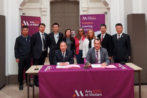 在法国里昂农业工程学院,焦新安一行参观了兽医临床医院、标本馆等教学科研场所,就学生培养、教师互派、科研合作、外专项目进行了深入交流。在法国里昂新中法大学,焦新安一行参观了中法大学旧址和纪念馆,听取了负责人Guillaume Arnould的介绍,就学生培养、海外人才招聘等与里昂新中法大学进行了深入洽谈。在法国国立高等工程技术学院,焦新安与校长Laurent Champaney商谈了江苏法国高校合作联盟事宜,并签署校际合作协议。焦新安表示,此次签署协议是两校加强工程教育领域交流合作的重要标志,希望进一步探索科研合作新模式,加大师生交流力度,拓展合作广度和深度,推进“卓越工程师人才”培养联合计划。在法国巴黎高等电子学院,焦新安与该校国际关系主管Thomas Ea共同回顾了双方人才联合培养、联合科研、师生互访等合作情况,商谈了江苏法国高校合作联盟及共同推进我校“中法学院”建设事宜,并就电子通讯等领域相关专业学生的联合培养,推进“卓越工程师人才”培养联合计划、教师互访和科研合作、外专项目等内容进行了交流,签署了校际合作协议和科研合作知识产权协议。