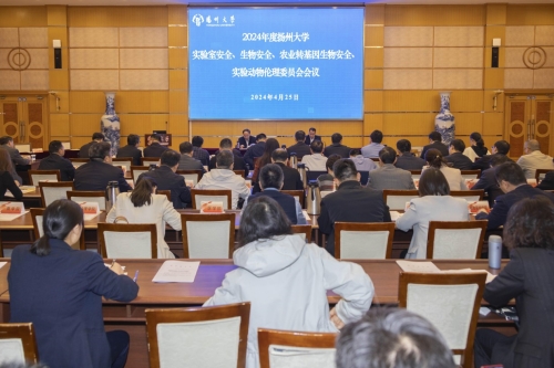 设备处负责同志作了学校实验室安全工作汇报。科技处负责同志作了学校生物安全、农业转基因生物安全和实验动物伦理工作汇报。农学院和兽医学院代表作了实验室安全工作经验交流。会议还邀请扬州市公安局危管大队教导员谢国源作了题为《高校的危险物品管理》的报告。