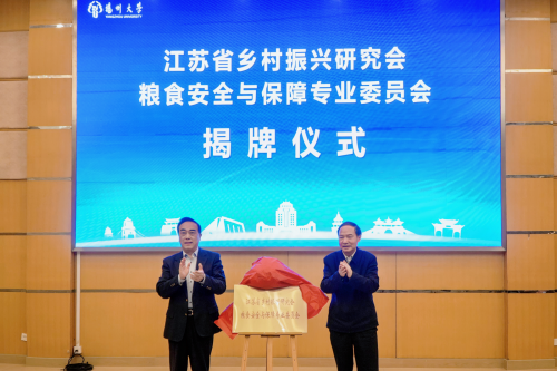 3月16日,江苏省乡村振兴研究会粮食安全与保障专业委员会揭牌仪式暨成立座谈会在荷花池校区举行。省乡村振兴研究会会长、省十二届政协副主席王荣平,我校党委书记焦新安,中国工程院院士、我校教授张洪程等出席会议。王荣平和焦新安共同为江苏省乡村振兴研究会粮食安全与保障专业委员会揭牌。副校长赵文明主持会议。