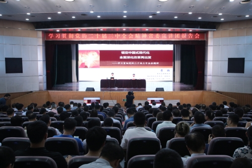 根据省委统一部署,8月19日,学习贯彻党的二十届三中全会精神省委宣讲团报告会在我校举行。省委宣讲团成员,江苏省社会科学院党委委员、副院长李扬作宣讲报告。校党委书记焦新安主持报告会。