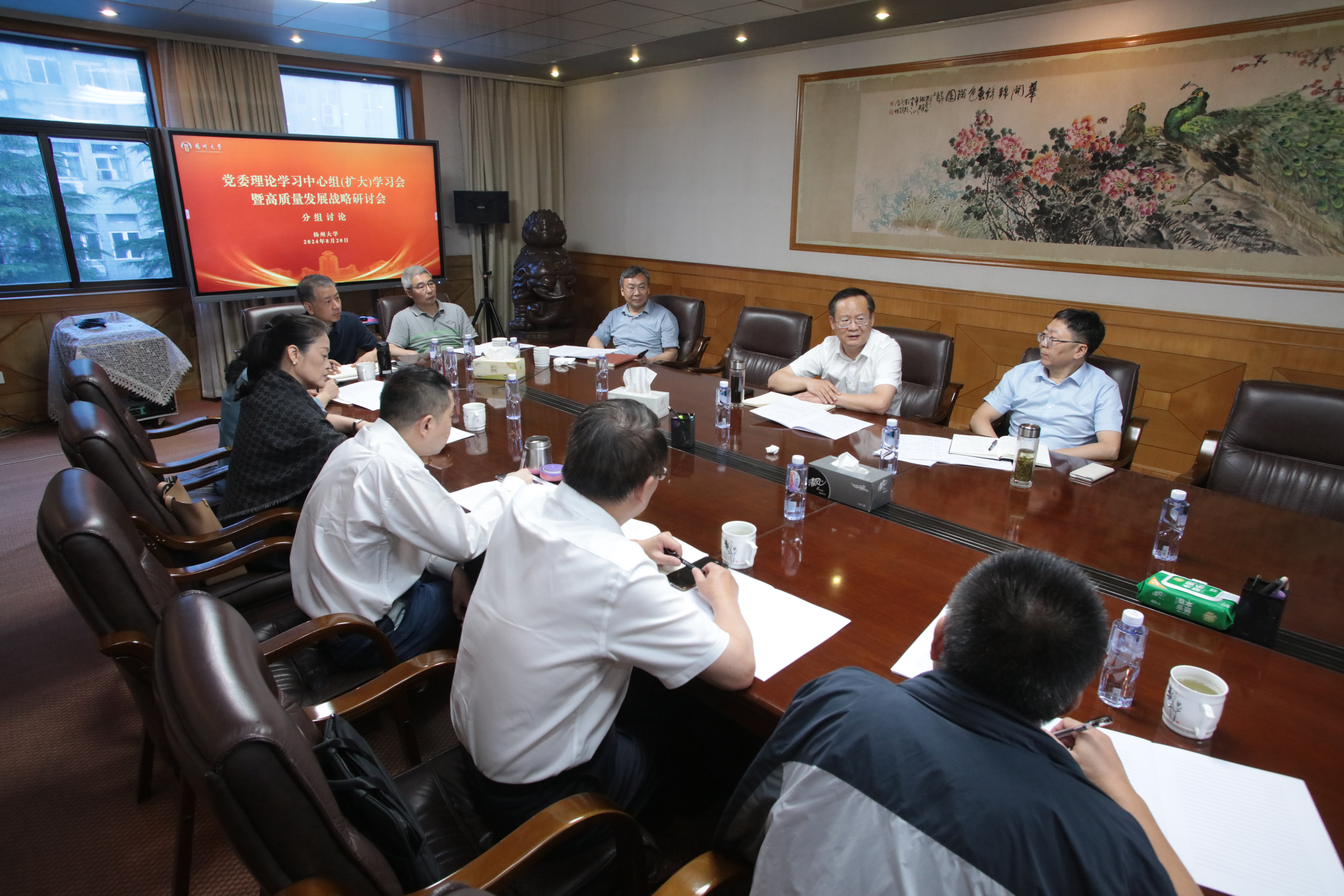 8月19日至20日,学校举行2024年暑期党委理论学习中心组(扩大)学习会暨高质量发展战略研讨会。会议主题是“以深化改革推进学科专业高质量发展,为发展新质生产力奋力书写扬大答卷”,主要任务是认真学习贯彻党的二十届三中全会和省委十四届六次全会精神,全面落实学校年度工作总基调要求,深刻剖析我校学科专业高质量发展面临的现实难点、痛点、堵点,探讨推进我校学科专业高质量发展的理念思路、改革举措等,以启迪智慧、形成共识、凝聚力量,进一步推动相关改革举措制定出台、落地落实。校党委书记焦新安作大会总结讲话,校长丁建宁作主旨报告,全体校领导、党委常委出席会议。