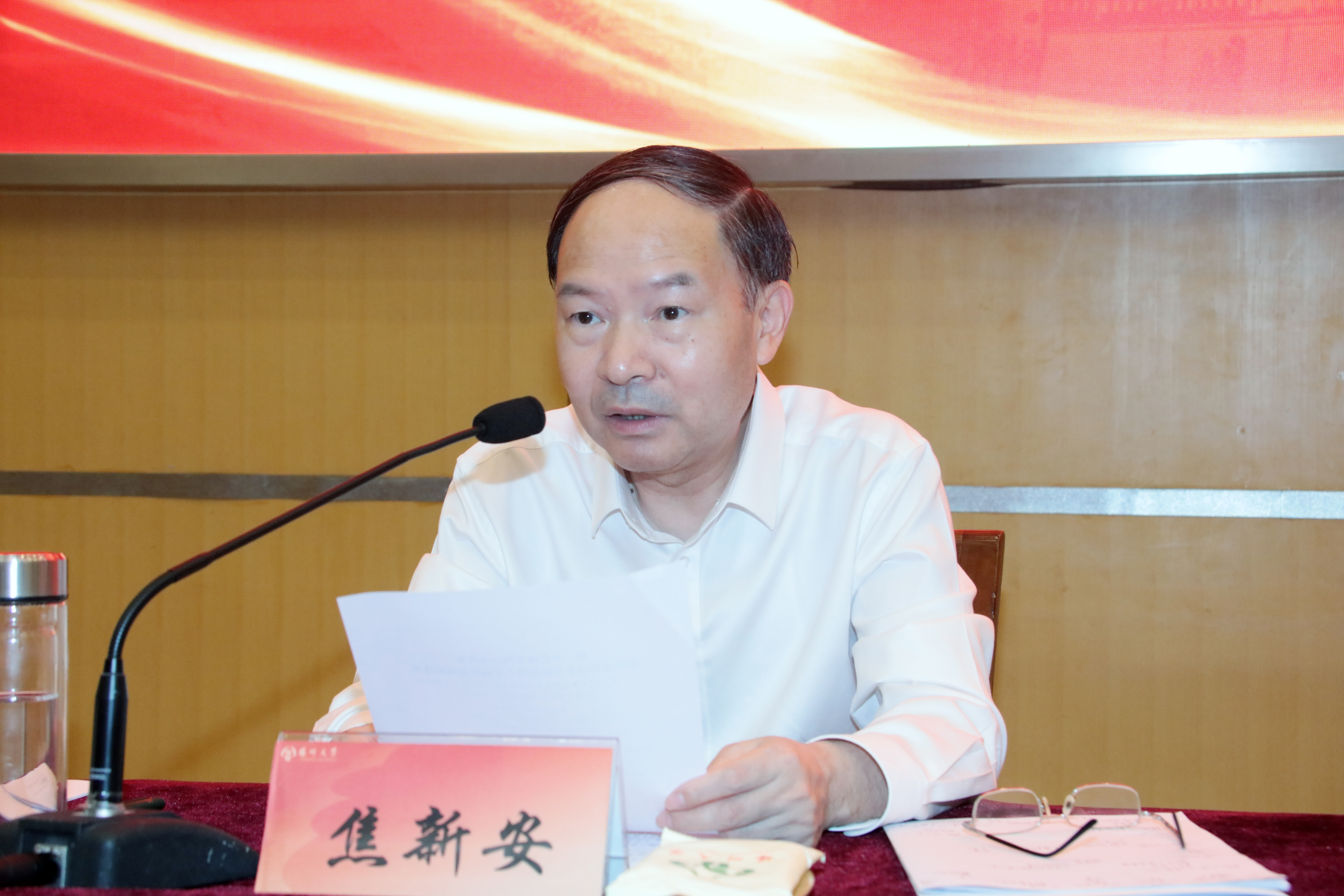 焦新安号召,全校上下要以时不我待的精神状态、狠抓落实的优良作风,积极投身学校各项改革,加快构建高水平研究型大学高质量发展体系,为跻身“双一流”建设高校而不懈奋斗。