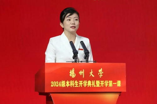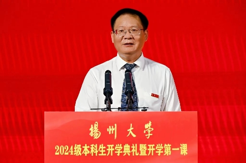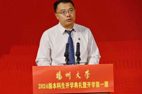 校党委书记焦新安以《高擎精神旗帜 赓续百廿荣光 努力做有志、有识、有为的新时代扬大好青年》为题,从大力弘扬爱国主义精神、坚苦自立精神和改革创新精神三个维度,为新生们讲授了精彩的“开学第一课”。焦新安说,扬州自古以来就是适宜生活学习的“好地方”,学校可以为大家求学问道、创新创行、筑梦逐梦提供强劲的支撑。他希望,广大新生弘扬爱国主义精神,在“小我融入大我”的生动实践中擦亮青春底色;弘扬坚苦自立精神,在“理论联系实际”的学习实践中提高青春成色;弘扬改革创新精神,在“创新点亮梦想”的探索实践中凸显青春亮色,从“好地方”出发,向好未来而行,努力成为有志有识有为的新时代扬大好青年。