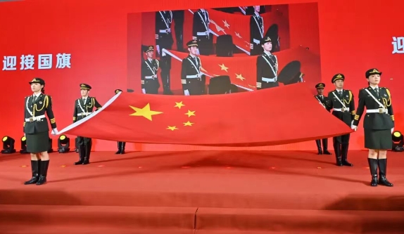 开学典礼上,学校举行了盛大的迎国旗、唱国歌仪式。在今年建校122周年之际,经学校申请和天安门管委会审批,我校获赠了今年校庆日当天(2024年5月19日)在天安门广场升挂的国旗,国旗编号为2024-0140。典礼现场,校国旗护卫队队员手捧国旗和证书列队入场,9000余名师生迎接国旗,齐唱国歌。整场仪式庄重而热烈,最后师生们以汹涌澎湃的爱国情怀共同唱响《歌唱祖国》。一瞬间,现场变成了国旗的海洋,不少师生热泪盈眶,爱国主义精神激荡在每一个扬大人的心胸。