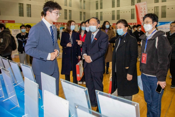 开幕式后,与会领导与嘉宾共同参观了大学生课外学术科技作品展,并与参赛学生和指导教师深入交流。
