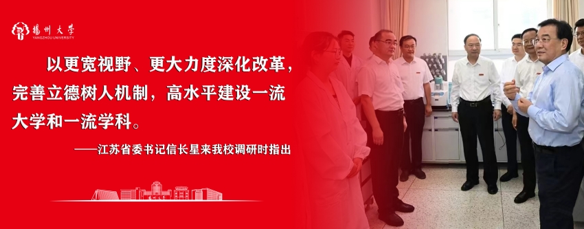 江苏省委书记信长星来学校调研并宣讲党的二十届三中全会精神,指示扬州大学要以更宽视野、更大力度深化改革,完善立德树人机制,高水平建设一流大学和一流学科。新华社社长傅华、青海省委书记陈刚、上海市人大常委会主任黄莉新听取学校工作汇报。江苏省委常委、省委宣传部部长徐缨,副省长赵岩等来校考察调研。学校跻身泰晤士2025年世界大学排名前600、中国内地高校第34位,自然指数排名全球高校第128位、中国内地高校第46位,2024软科世界大学学术排名301-400区间、国内排名52-74区间,综合实力、学术影响力、社会美誉度不断攀升。