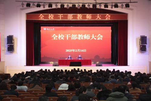 2月14日,学校在文汇路校区大礼堂召开2024-2025学年春季学期干部教师大会。校党委书记丁建宁主持会议并发表题为《全面深化改革 奋力争创一流 以焕新风貌加快推进高水平研究型大学建设》的总结讲话。校长刘巧泉作了题为《深化改革担使命 冲刺决胜创一流 以更宽视野更强动力推动更高质量发展》的工作报告。全体在扬校领导、党委常委出席会议。