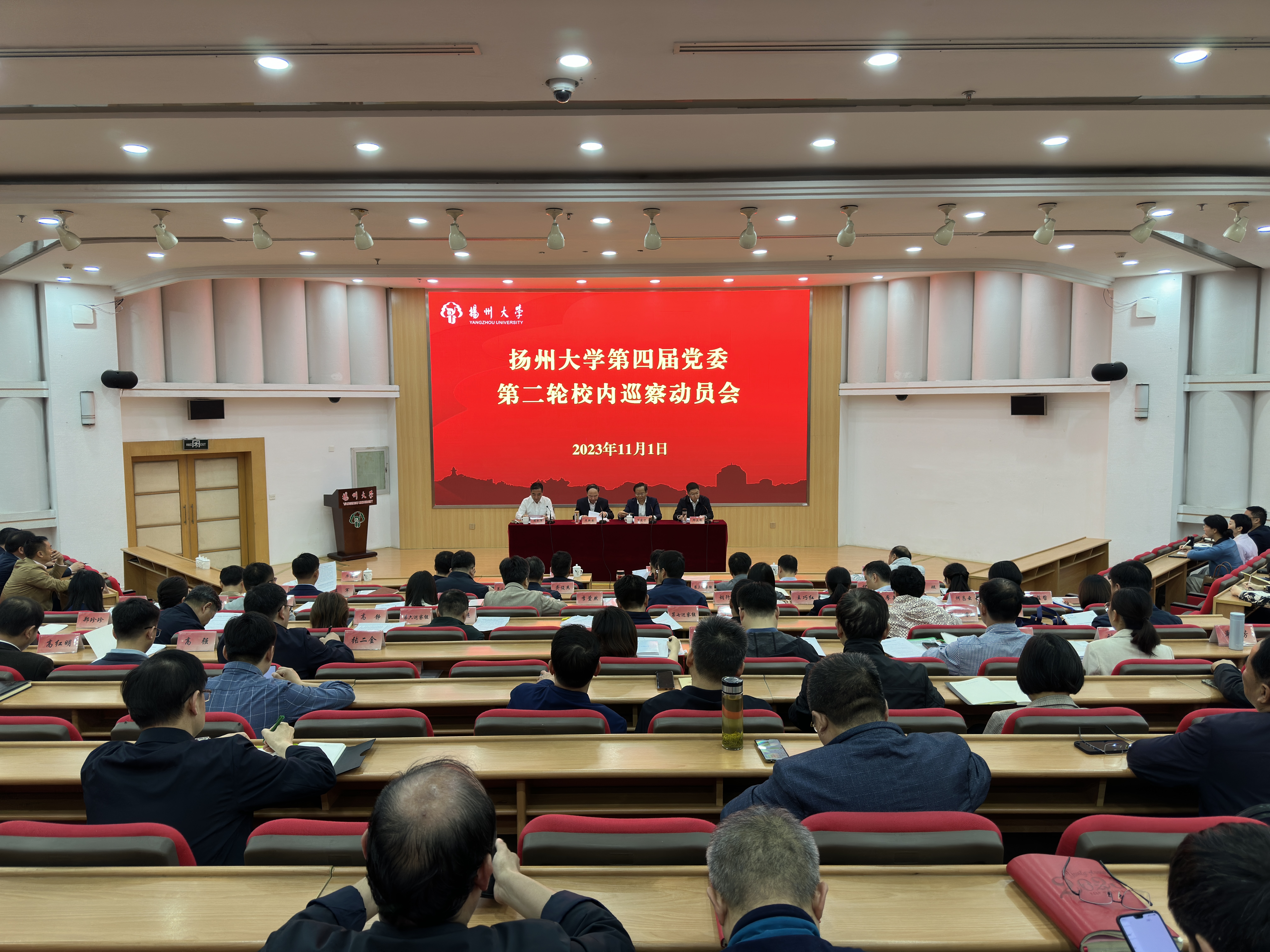 11月1日上午,校第四届党委第二轮校内巡察动员会在荷花池校区逸夫馆报告厅召开。校党委书记、校党委巡察工作领导小组组长焦新安出席会议并讲话。校长、领导小组副组长丁建宁宣读巡察组授权任职和任务分工。校党委副书记、领导小组副组长周如军主持会议。校纪委书记、派驻监察专员、领导小组副组长邱庆峰解读巡察工作方案。全体在扬校领导、常委出席会议。