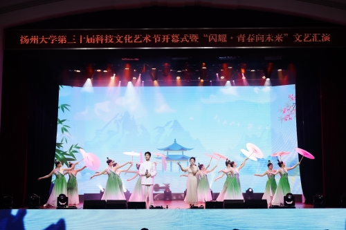 文艺汇演以“闪耀·青春向未来”为主题,分为“聚光·卅载绽芳华”“拾光·青春正当燃”“沐光·逐梦向未来”三个篇章,以民乐合奏、舞蹈、流行戏曲、朗诵等多种形式,高质量展演了《哪吒》《有AI的时光》《缘·前世今生》《光》等节目,充分展现了扬大学子的青春风采。现场推出的主题微电影《相信》,展现出新时代扬大学子志存高远、斗志昂扬的精神风貌。