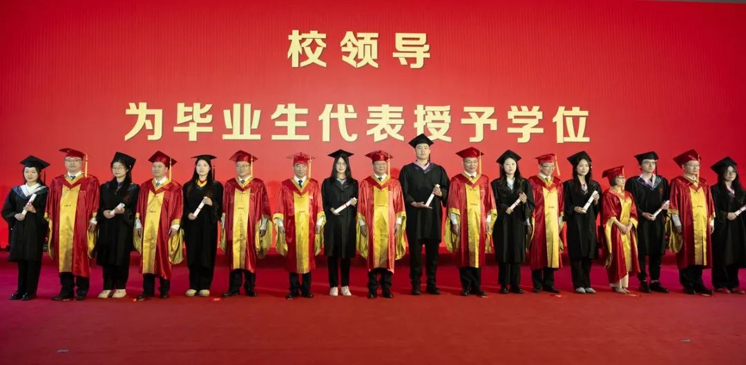 典礼上,丁建宁、刘巧泉等为优秀毕业生代表颁奖,为校友联络大使、联络员代表颁发聘书。在学位授予环节,丁建宁、刘巧泉为全体博士毕业生颁发学位证书、拨穗正冠,并与同学们一一合影留念。全体校领导为硕士和本科毕业生代表授予学位。