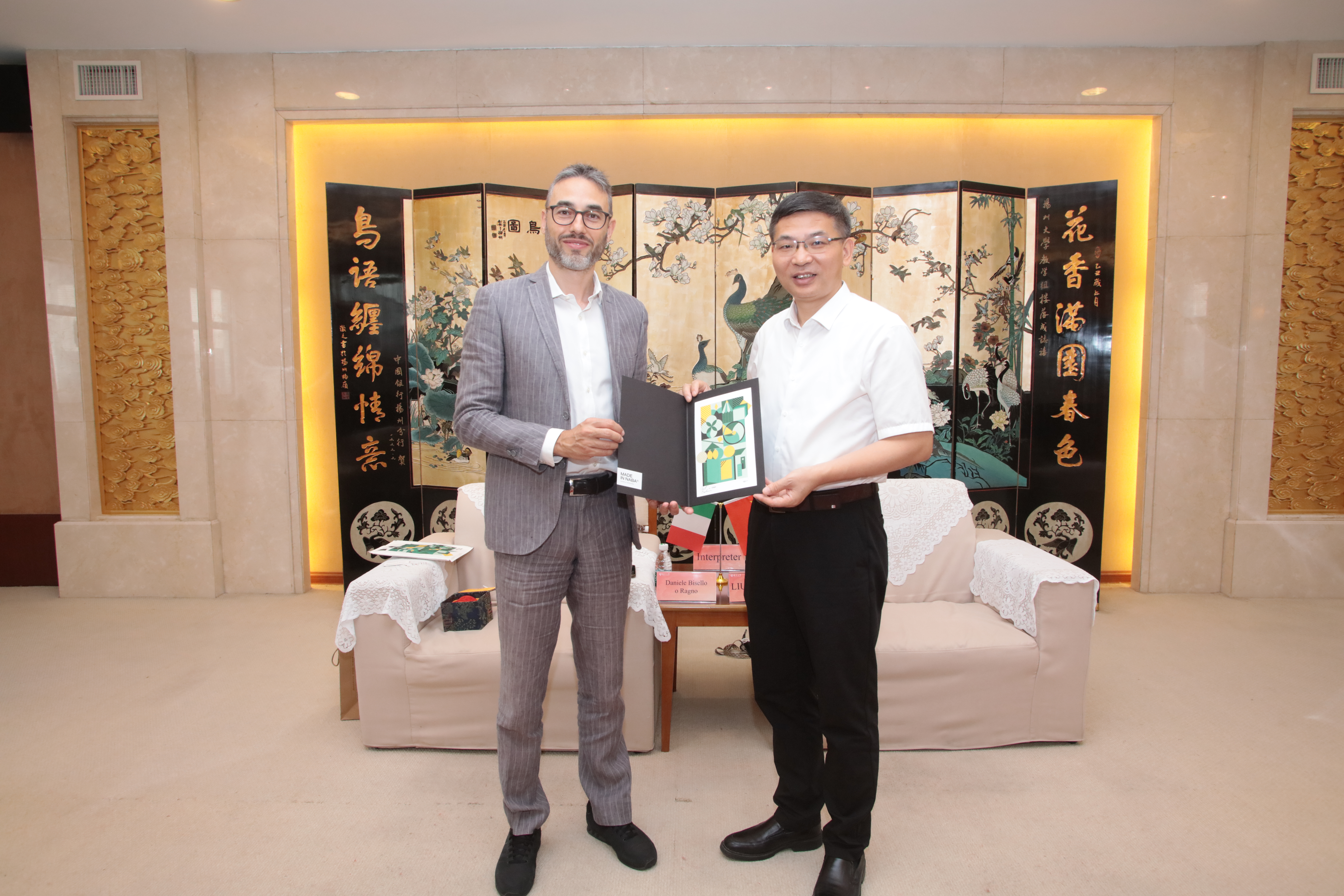 6月18日,意大利米兰新美术学院校长丹尼埃莱·比塞洛·拉尼奥一行访问我校,校长刘巧泉会见来宾,副校长蔡颖蔚陪同会见。