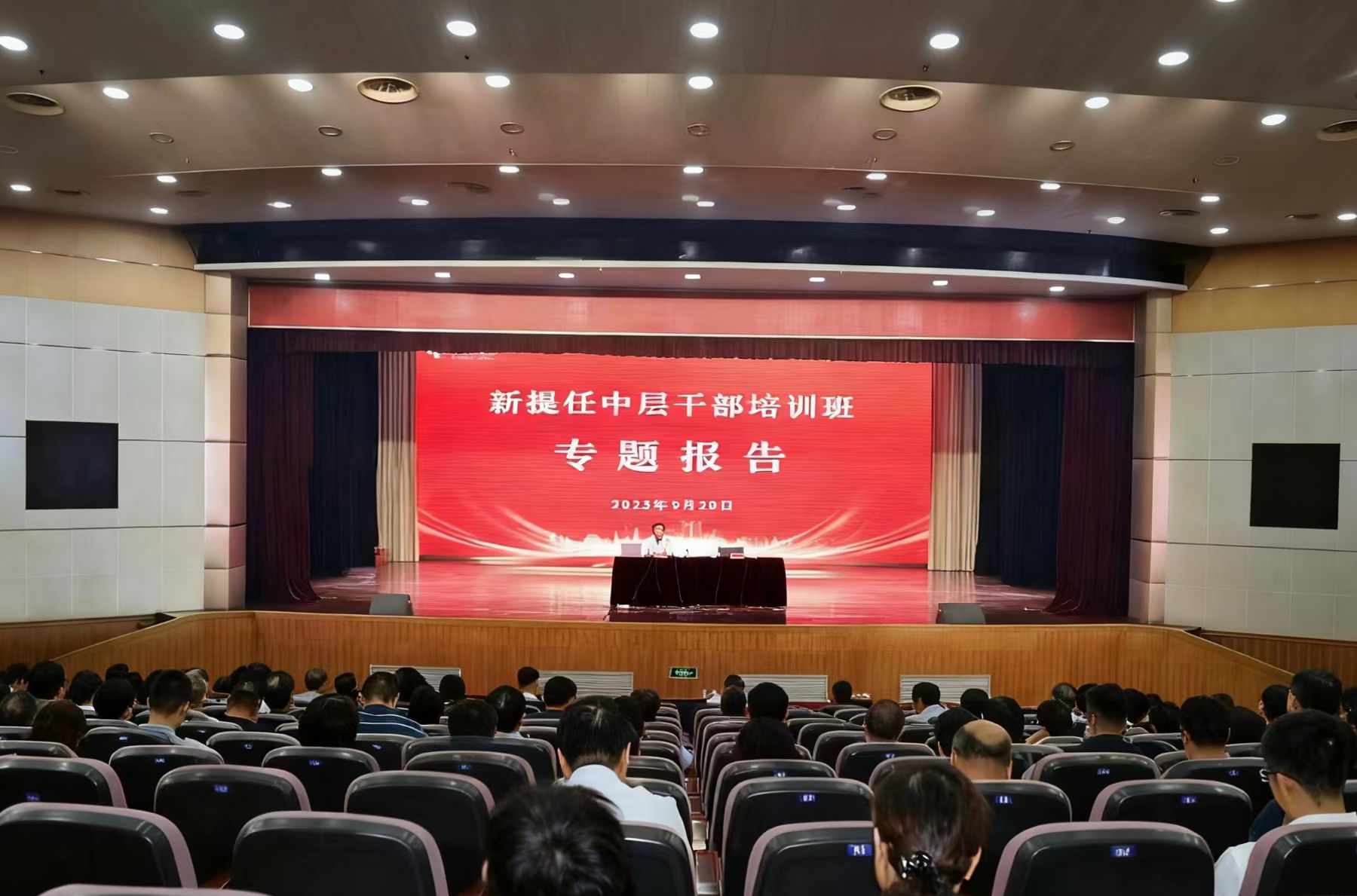 新提任中层干部培训班全体学员,全体中层干部、五六级职员参加报告会。