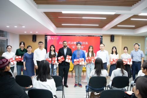 活动现场,刘巧泉向第三届学生校务助理颁发聘书,与新生代表共同投递“时间胶囊”,并与韩杰、蔡颖蔚以及宣传部主要负责同志共同向新生代表赠送图书《读大学,究竟读什么》及“朋辈‘星’语盒”。
