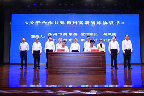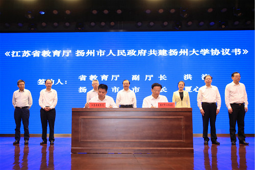 洪流、夏心旻代表省教育厅和扬州市人民政府签署了《江苏省教育厅、扬州市人民政府共建扬州大学协议书》;夏心旻、焦新安代表市校双方签署了《扬州市人民政府、扬州大学进一步全面深化合作协议书》;扬州市委常委、宣传部部长勾凤诚,我校党委副书记叶柏森代表市校双方签署了《关于合作共建扬州高端智库协议书》;扬州市副市长方桂林、我校副校长费坚代表市校双方签署了《关于推进扬州大学附属医院建设和发展合作协议书》;方桂林、我校副校长黄建晔代表市校双方签署了《关于合作共建高水平科技创新平台协议书》。