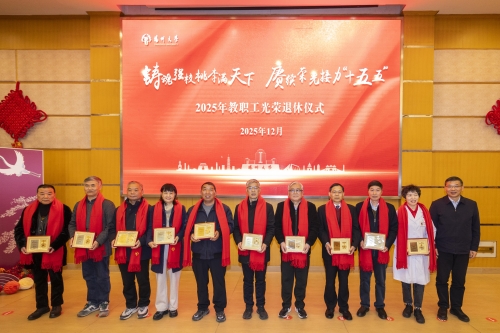 12月3日,扬州大学2025年教职工光荣退休仪式在荷花池校区主楼二楼多功能厅举行。校长刘巧泉出席仪式,为退休教职工代表颁发纪念章并讲话。宣传部主要负责同志主持仪式。