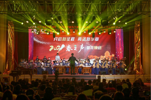 本次新年晚会由宣传部主办,音乐学院、公共艺术教育中心承办。全校600余名师生观看演出。