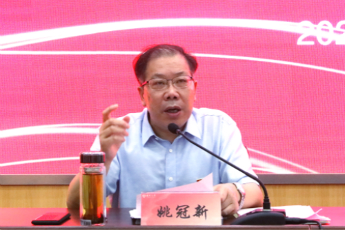 姚冠新在讲话中向各位新入职的教师表示热烈的欢迎,并简要介绍了学校的办学历史、改革历程、综合规模、发展质态和目标定位。姚冠新指出,教师是立教之本、兴教之源,年轻教师永远代表着学校的希望和未来。只有各位教师,尤其是青年教师坚持加油奋斗,学校才会持续昂扬奋进;只有各位教师,尤其是青年教师积极追求成才,学校才会不断取得成功。姚冠新希望全体新教师,要在自己的职业发展道路上,让理想信念成为一种追求,让责任担当成为一种品格,让开拓奋斗成为一种精神,让追求卓越成为一种习惯,让高尚人格成为一种魅力。要争做“四有”好老师,当好学生的“四个引路人”,尽快成长成才、成名成家,努力培养具有大德、大智、大气和鲜明扬大烙印的一流人才。