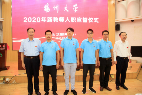 在新教师入职宣誓仪式上,姚冠新、焦新安为新入职教师代表佩戴校徽。陈亚平、俞洪亮向新教师代表赠送教师节纪念品。新教师代表秦亦舒,全国抗击新冠肺炎疫情先进个人李娟娟,教师代表韩杰先后发言。