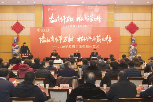 12月28日,学校在荷花池校区举行2020年教职工光荣退休仪式。校长焦新安出席活动并讲话,校党委副书记叶柏森主持仪式,副校长洪涛出席活动并致辞。