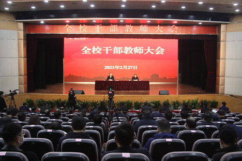 2月27日下午,学校在荷花池校区大学生活动中心三楼小剧场召开全校干部教师大会。校党委书记姚冠新主持会议并讲话,校长焦新安总结“十三五”事业发展成就和2020年主要工作成效,系统部署“十四五”主要发展任务和今年的重点工作。