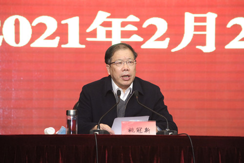 对于2021年工作,姚冠新要求,要坚定秉持“立足新阶段、激发新动能、务求新突破”的年度工作总基调,着力做好六个方面的工作:一是以庆祝建党100周年为主线,扎实开展党史学习教育,全面提升党建质量和水平,涵育形成比学赶超的发展氛围;二是以编制实施“十四五”规划为切入点,谋划细化改革发展重点任务;三是以入选一流学科建设高校为目标,统筹做好学科评估和学位点增列等工作;四是以召开本科教育大会、人文社科大会、科学技术大会为契机,持续提升内涵发展水平;五是以深化新时代教育评价改革为统揽,持续优化学校治理体系;六是以汇聚更多办学资源为落脚点,全方位拓展开放合作。