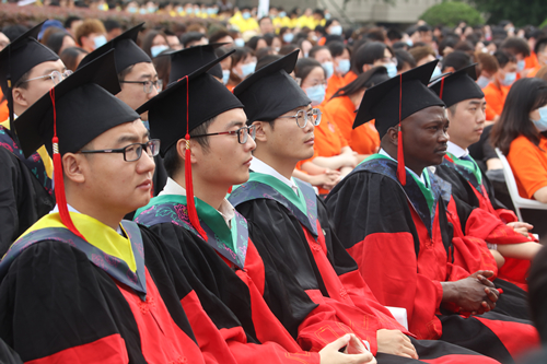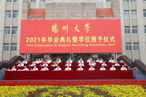 典礼上,在兽医学院2021届硕士毕业生钟昊然同学的带领下,8500余名毕业生右手握拳,庄严宣誓:“志存高远,明德躬行,求是求实,求新求精,坚苦自立,勇于担当,心系扬大,为国栋梁。”振奋人心的誓词在广场上空激荡,气氛热烈而庄重。典礼中,我校师生精心准备的诗歌朗诵《归来仍少年》、歌曲《少年》等精彩节目,博得了毕业生们阵阵掌声。广场上彩旗招展、歌声飞扬,师生们心潮澎湃、热血沸腾,浓浓的母校情、师生情、同窗情交织在一起,场面温暖而感人。
