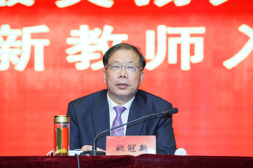 姚冠新在讲话中向各位新入职教师表示热烈欢迎,并简要介绍了学校的办学历史、改革历程、综合规模、发展质态和目标定位。姚冠新指出,教师是立教之本、兴教之源。高等教育质量好不好,关键靠人才;高校水平高不高,关键靠人才;大学后劲足不足,还是靠人才。他希望新入职教师要做理想信念坚定的实践者,善用科学思维的创新者,敢于担当责任的奋斗者,坚定追求卓越的引领者,高尚人格魅力的示范者,深怀爱校之心、砥砺从教之志,尽快融入扬大、融入团队,尽快成长成才、成名成家,坚决担负起建设高水平研究型大学的使命责任。