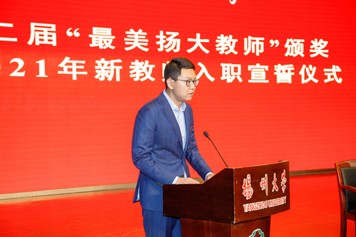 11月18日下午,学校隆重举行第二届“最美扬大教师”颁奖暨2021年新教师入职宣誓仪式。校党委书记姚冠新出席会议并讲话,校长焦新安为全体新入职教师作岗前培训主题报告。校党委副书记叶柏森主持会议。