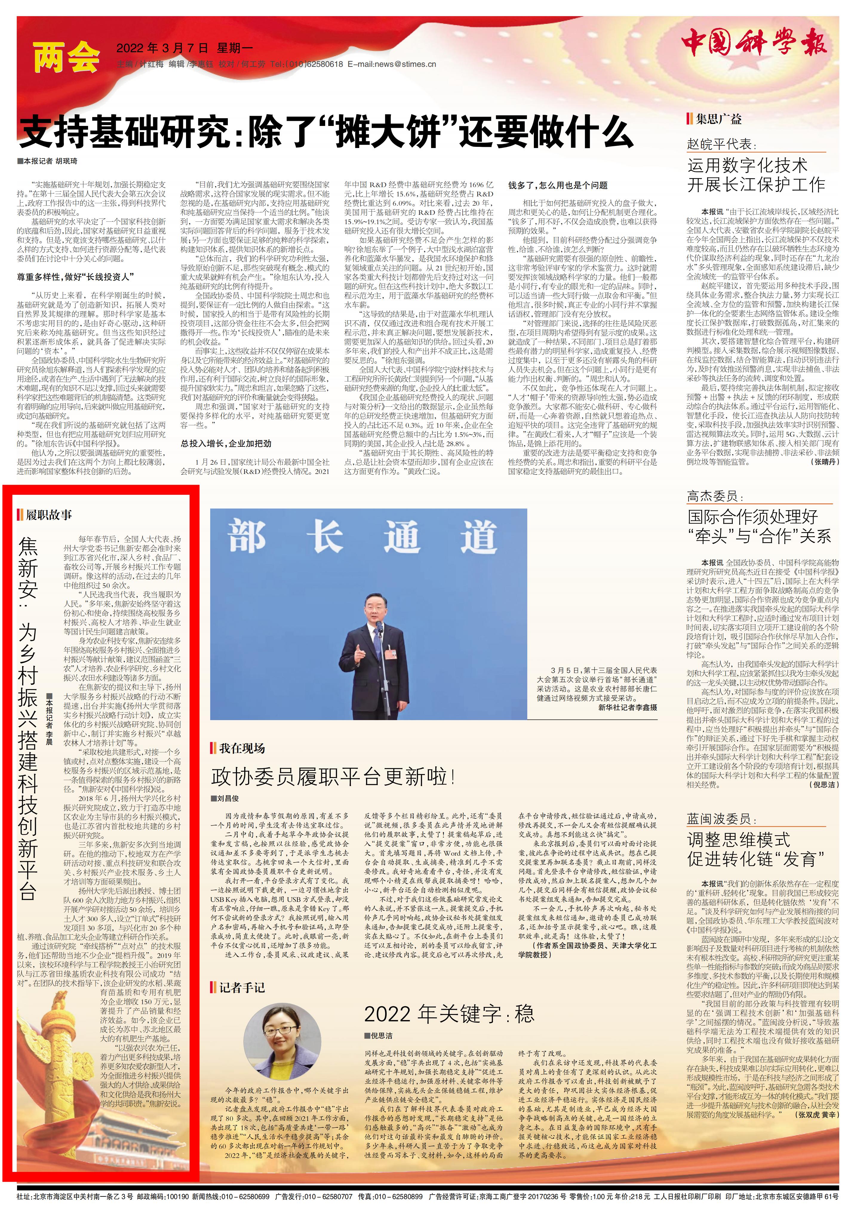 ——《中国科学报》 (2022-03-07 第4版 两会)