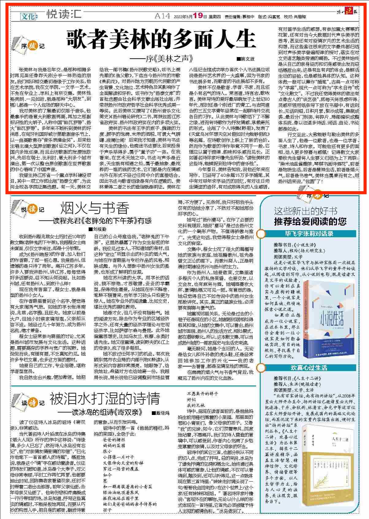 行文至此,大致能够勾勒出美林的多面人生了,他是一位歌者,也是一位学者、书家、诗人和作家。可能他还有更多的面相,给人更多惊喜与感佩!记得散文大家秦牧先生曾将人生要义归结为上下两联:“柴米油盐酱醋茶,琴棋书画诗酒花”。前者是物质生活,后者是精神生活,前者是烟火气,后者是书卷气,美林当属兼而有之,用扬州话来说,“包圆”了!