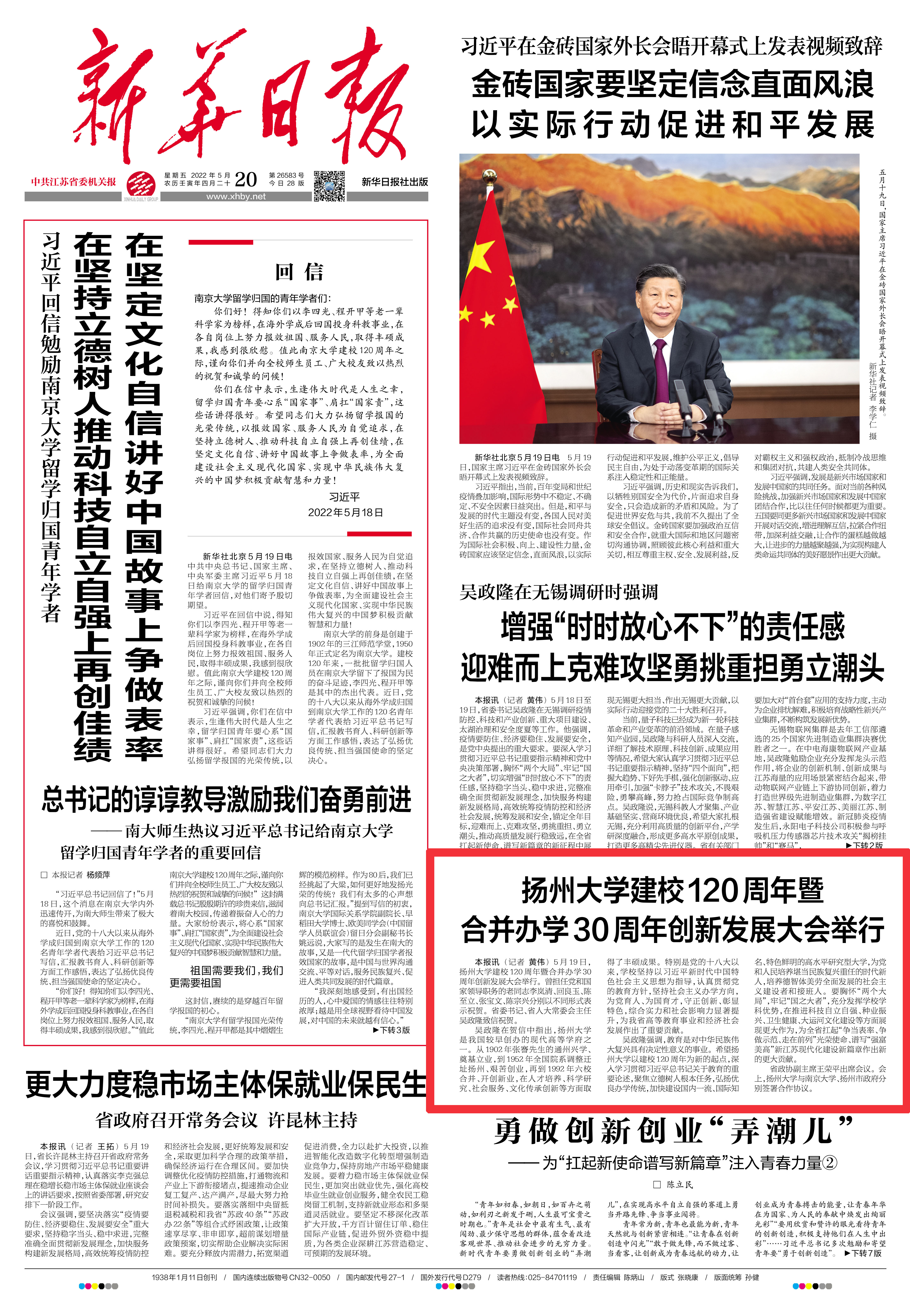 ——《新华日报》2022年5月20日 头版