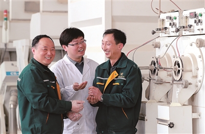 在江苏光明天成米业有限公司(兴化)生产车间,扬州大学农学院师生技术指导团队对兴化大米品牌发展进行指导和帮助。