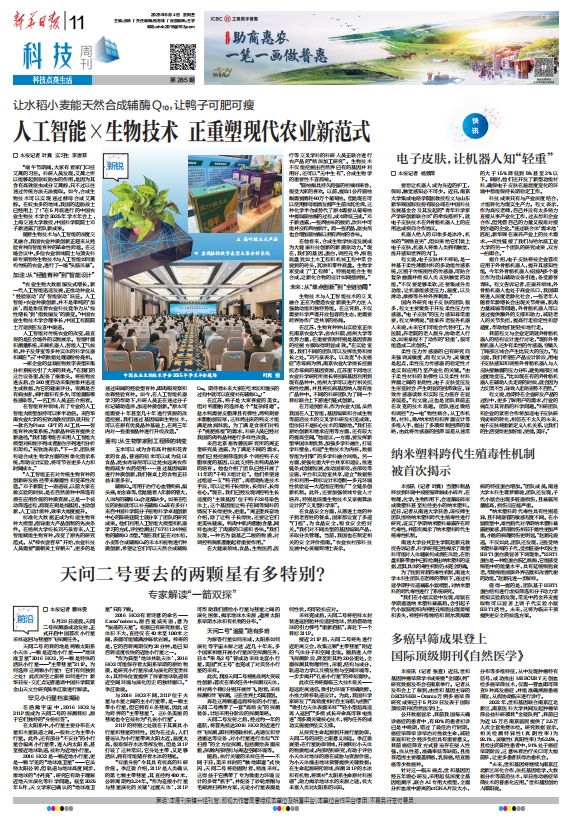 在万建民看来,作为农业大国,虽然我国在人工智能、基因编辑和合成生物等前沿技术的交叉学科研发初见成效,但依旧不是核心技术的策源地。“我们在原始创新和继承应用等方面,还有较大的提高空间。”他建议,一方面,要发挥新型举国体制优势,加强多学科融合,打破学科壁垒,构建“生物技术为内核、数据智能为引擎”的多学科融合网络。另一方面,要强化重大平台共享和建设,推进链条式创新发展,推动国家级、省部级等设施、平台和实验室共享,建立“数据整合和利用—目标设计和创制—多元环境性状验证—大范围应用推广”全链条创新机制。此外,还要加强领域专业人才培养,特别是既懂生物技术又掌握算法设计的“交叉型科学家”。