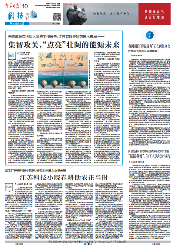 三月春耕正当时,扬州市江都农机科技小院中,扬州大学的师生们正对“九合一”复式耕播机进行精细调试;南京市溧水青梅科技小院里,南京农业大学的师生们忙着在林间测量数据、嫁接枝条、采集样本;南通市海安桑蚕科技小院中,江苏科技大学的师生们专注筛选适配人工饲料的蚕种,为新一季养蚕注入优质种源……江苏大地上,53家国家级科技小院、100家省级科技小院正以春为令,让科技创新在田间地头焕发蓬勃生机。