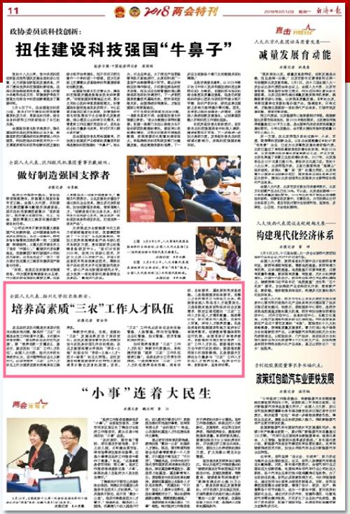 【经济日报】全国人大代表、扬州大学校长焦新安: 培养高素质“三农”工作人才队伍