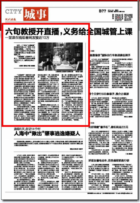 除直播以外,王毅教授还通过多种途径与关心城市管理的网友们保持互动。早在2011年,王毅教授就注册开通了名为“王毅城管”的新浪微博,有着一万多粉丝的王毅教授是经微博认证的大V,是一个不折不扣的“网红”。在自学新媒体的过程中,王毅教授也不愿落伍,在学生的帮助下创办了自己的微信公众号。通过公众号发表文章,对城市管理与城管综合执法方面的问题进行解读,为基层城管执法指引方向。
