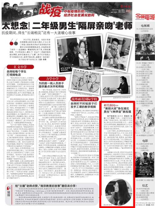 【扬子晚报】“美丽大班”身在湖北 男生“4种声音”表祝福